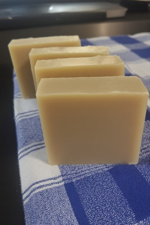 Homemade bars of lye soap with a Bay Rum fragrance. Bars are 3 in. X 2 in. X 1.